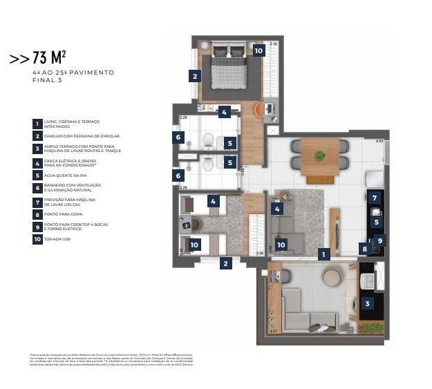 44 UNIDADES DE 2 DORMS. (1 SUÍTE) – 73,85 E 74,04 M2 – 1 VAGA